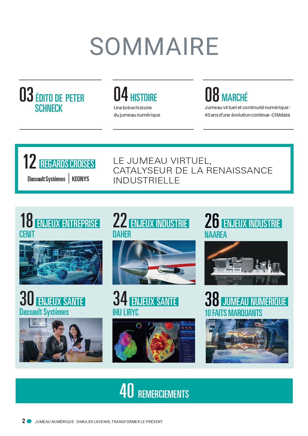 Ce livre blanc propose une vision claire, structurée et illustrée des enjeux et usages du jumeau numérique, à travers des analyses d’experts et des retours d’expérience terrain au sein des entreprises, des industries et de la santé.